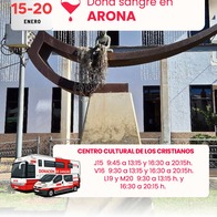 El área de Sanidad del Ayuntamiento de Arona, en colaboración con el Instituto Canario de Hemodonación y Hemoterapia, nos informan que la Unidad Móvil se encontrará en el exterior del Centro Cultural de Los Cristianos, desde el jueves 15 al martes 20 de enero de 2026.